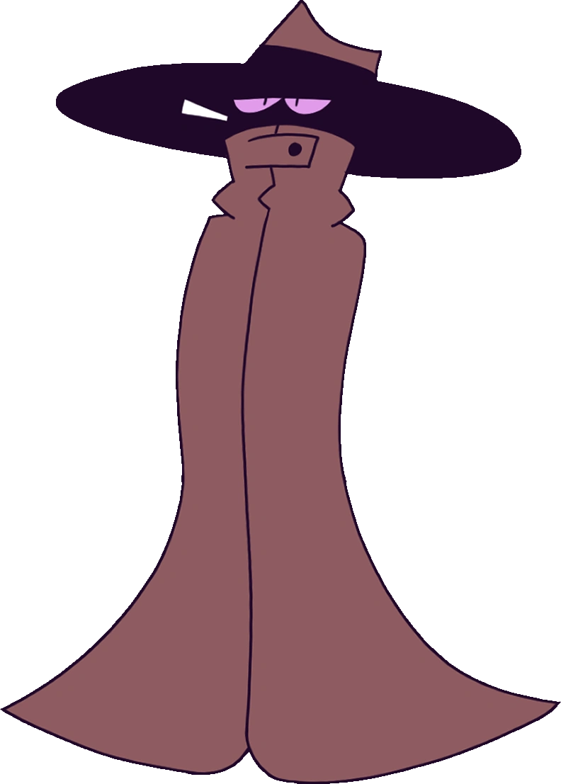 The "Candy Dealer's" physical appearance is unknown as a result of his outfit. He constantly wears a reddish-brown full-body trench coat that hides his body, and a reddish-brown wide-brimmed hat that conceals his face. Both of his eyes are tinted pink, and he is always seen with a stick in his mouth, probably smoking pot. He seems to wear black gloves underneath his coat.